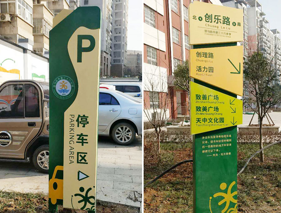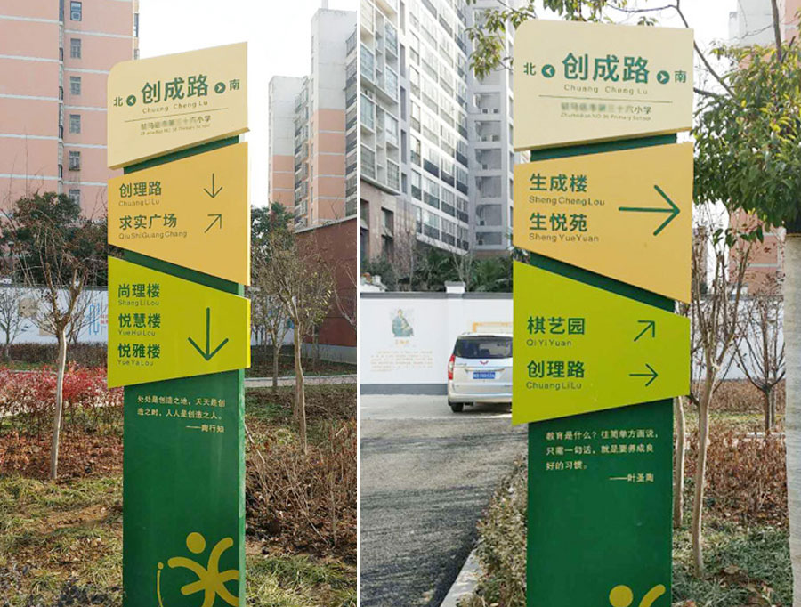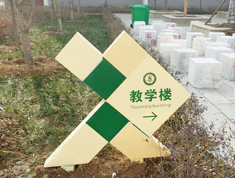 隨著教育事業(yè)的發(fā)展,學校標識標牌悄然闖入眾多校園,它是提高學校輔助教育的硬件設施并已融入校園文化中。在校園內外空間中,不同顏色、不同樣式、不同功能的校園標識隨處可見,為不同的環(huán)境起著指引、指示、說明、提醒等作用,并通過圖文并茂的方式使得來自不同國家的學生跨越了語言障礙,為不同國家和民族的人們之間的交流提供了不可小視的作用。